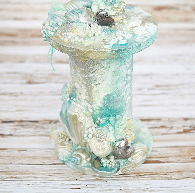 This is an altered wooden spool turned photo holder. I promise you this is a quick 30 minute make! Come and watch me create here :)